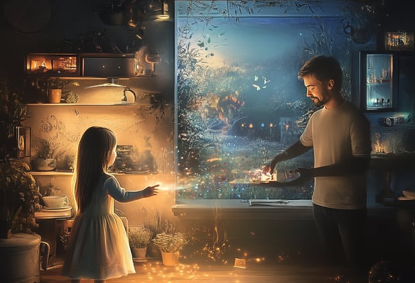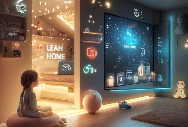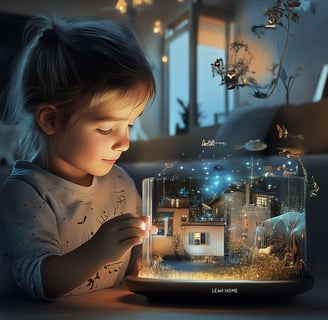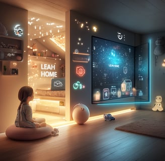 "So, LEAH’s dad began preparing a world just for her—one where lights, switches, curtains, the TV, the air conditioner, the robot vacuum, the sprinkler system, and all other household essentials could respond to her voice. All of this was to fulfill his daughter's simple wish: to use her magical powers to help her parents. LEAH’s dad kept busy, determined to create a magical unicorn world for his daughter.