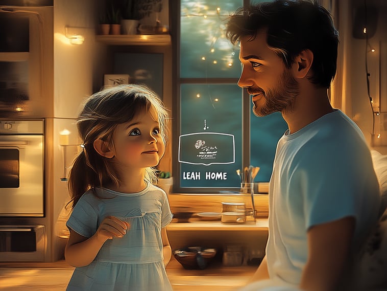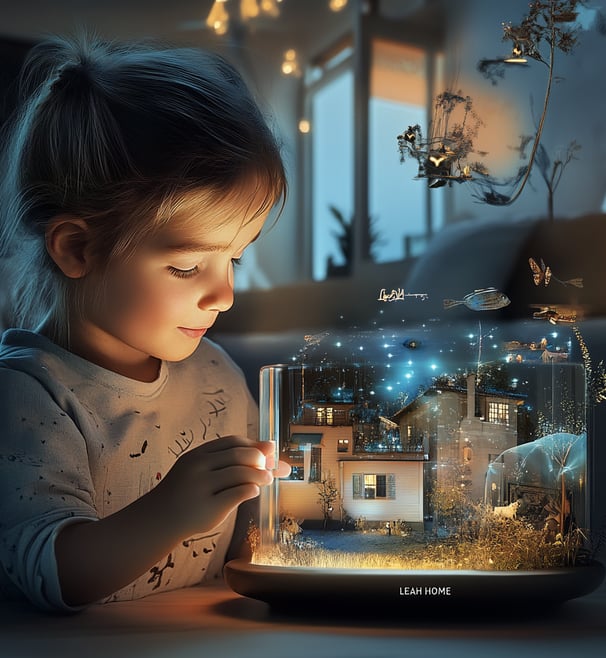 One day, LEAH suddenly asked her dad, "Dad, can you make a magical house for my friends too?" Her dad felt a deep sense of comfort and pride, realizing that LEAH knew how to share her things with others instead of showing off. She was a loving child. Determined to fulfill LEAH's wish and bring joy to other children who loved "magic," her dad decided to establish a smart home company called "LEAH HOME." Yes, the name was "LEAH HOME," because it represented the "magic" LEAH wanted to share with her friends.